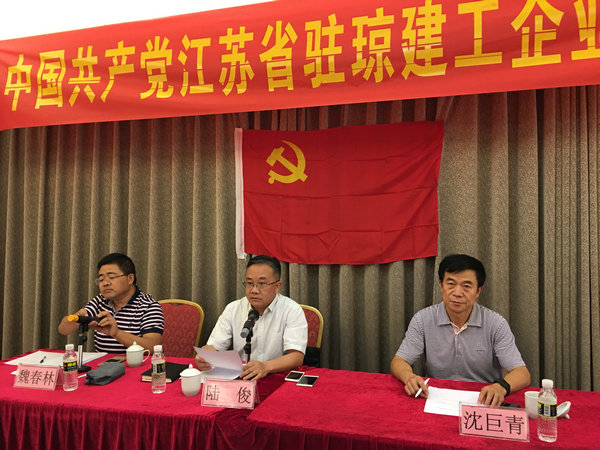经海南省直机关纪工委批准,9月8日下午,江苏省驻琼建工企业党委在海口市观海温泉酒店召开党员大会,选举首届中共江苏省驻琼建工企业纪律检查委员会。会议由党委委员魏春林同志主持,江苏驻琼建工企业党委书记陆俊同志到会指导。