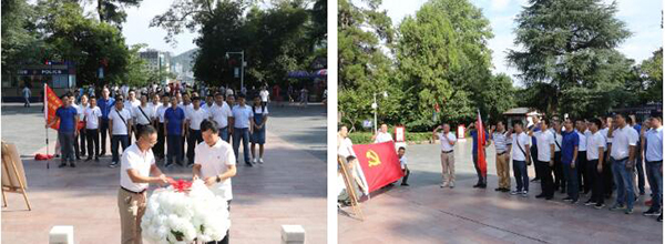 在凤凰山烈士陵园,学员代表向烈士敬献花篮并瞻仰邓萍烈士墓,江苏省驻琼建工企业党委委员高家驯带领大家重温入党誓词,全体学员右手抱拳高高举起,庄严宣誓,坚定有力的宣誓声响彻广场。