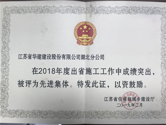 3月26日下午,2019年江苏建筑业中南地区工作会议在湖北武汉召开,来自江苏驻鄂、湘、赣多家建筑业企业近200名代表参加大会,江苏省住建厅、湖北省住建厅相关领导、江苏省住建厅驻中南办事处主要负责同志出席会议并在主席台就座。会上表彰了一批先进集体和先进个人。其中江苏省华建建设股份有限公司湖北分公司被表彰为2018年度江苏出省施工先进集体,吴润年、刘远位同志分别被表彰为2018年出省施工先进个人。(湖北公司)