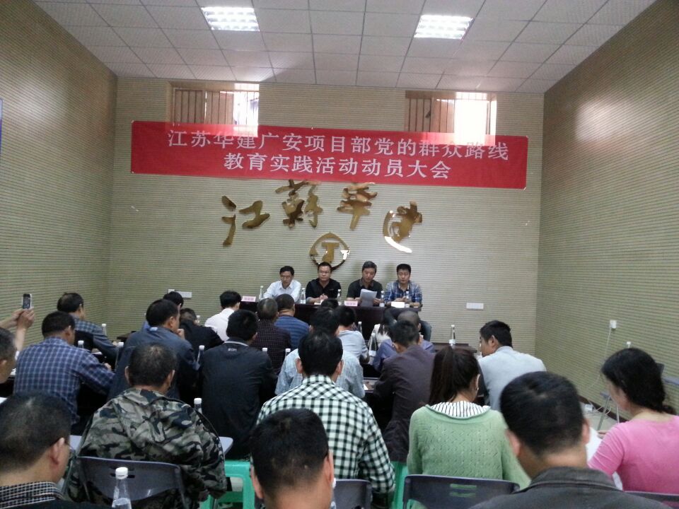 2014416日,半岛官网入口网页版四川广安官盛新区基础设施暨美好家园建设项目部党小组召开党的群众路线教育实践活动动员大会。项目部所有党员及各重要岗位管理人员共40余人参加会议。会议由珠海区域公司副总经理严正涛主持。珠海区域公司副总经理、总工程师周学军在会上传达了上级党委关于深入开展党的群众路线教育实践活动的实施方案和总的要求。珠海区域公司办公室相关人员向与会者详细介绍了本次活动所着力反对的“四风”的主要表现形式。官盛镇党委副书记马江林参加会议,并对党小组相关活动的开展提出了具体要求和指导意见。