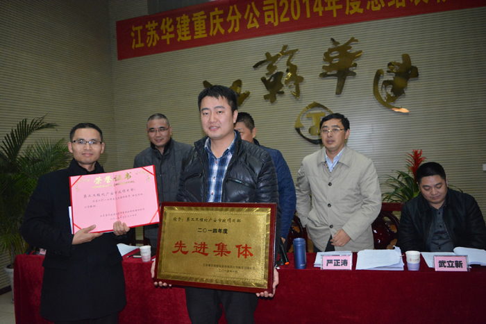 1月25日下午4点,重庆分公司在广安官盛新区基础设施暨美好家园建设项目指挥部一楼会议室召开了2014年度总结表彰大会。缪国枢总经理主持会议,副总经理严正涛作重庆公司2014年度工作报告并宣读了2015年度生产经营工作计划,一处主任吴长生宣读了《关于表彰2014年度先进个人和先进集体的决定》。会上,缪国枢总经理代表珠海区域公司正式聘任余广同志为广安官盛新区建设项目副总指挥,聘任武立新、施宏、林刚等3位同志为广安官盛新区建设项目副总工程师,并与各工程处、直管项目部负责人签订了《质量/安全目标责任书》,明确各单位目标和责任,要求各单位努力践行“铸造精品,追求卓越”的企业质量观,守护员工的生命安全,为企业品牌建设贡献力量。