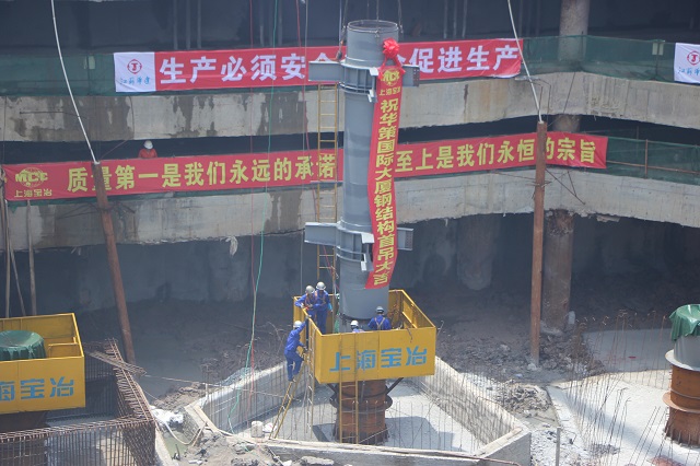 该工程地下室5层,基坑开挖深度为25米,局部深度达到30米,地质条件复杂,淤泥层达20余米;结构形式为外框架钢板桩加核心筒钢板墙体系,地上26层,建筑面积11万平方米。钢结构总用钢量约15000吨,主要应用于塔楼核心筒、外围钢框架及空中钢连廊等部位。其核心筒采用先进的装配式内设钢管暗柱钢板剪力墙结构,该做法为珠海市首次运用,全国第5例。该种钢板剪力墙不仅克服了钢筋混凝土剪力墙自重大、角部混凝土易开裂、易碎等缺点,还具有延性好、施工速度快等优点。该项目计划采用2层1吊的方式进行安装,正常施工进度可达7天2个标准层。