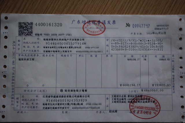 珠海区域公司第一张增值税发票成功开具 时间:2016-06-01 2644 建筑行业“营改增”自5月1日起正式实施,公司领导高度重视“营改增”工作,先后完成了税控设备软硬件更新、数次的“营改增”知识培训及交流会,并在主管国税局完成了有关一般纳税人认定、增值税发票额度调整、公司老项目备案等工作。 5月31日,财务处成功开具了第一张增值税普通发票,此票为公司第五项目部承担施工任务的晋和天庆花园总承包工程使用,走出了公司“营改增”工作的坚实一步。