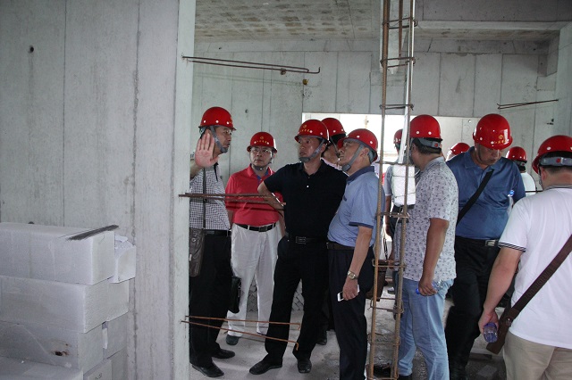 9月8日,在珠海公司总工程师周学军陪同下,由深圳公司常务副总经理、总工程师吴碧桥带队,深圳公司各工程处生产主任、技术主任、项目经理等一行33人到珠海公司承建的帝景湾山庄和晋和天庆花园项目观摩交流铝合金模板施工技术。周总通过图文并茂的PPT讲解和现场实地观摩详细介绍了铝合金模板施工技术特点以及与传统木模板施工的差别,对施工过程关键节点做法、成本控制做了讲解。双方人员针对细节和质量控制问题进行了深度交流。
