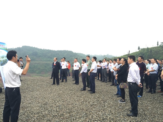 广安区党代会代表团参观广安项目 时间:2016-09-27 3647 9月26日,中共广安区第五次代表大会召开之际,广安区委书记文建平、副书记吴荣胜率与会代表共计超过400人参观官盛新区。代表团一行沿新区已建成主次干道行进,并在官盛湖大坝和官盛春天美好家园建设现场下车驻停,广安区委常委李常兵从项目规划缘由、项目建设进展及社会影响和效益等方面对两个项目做了详细解说。