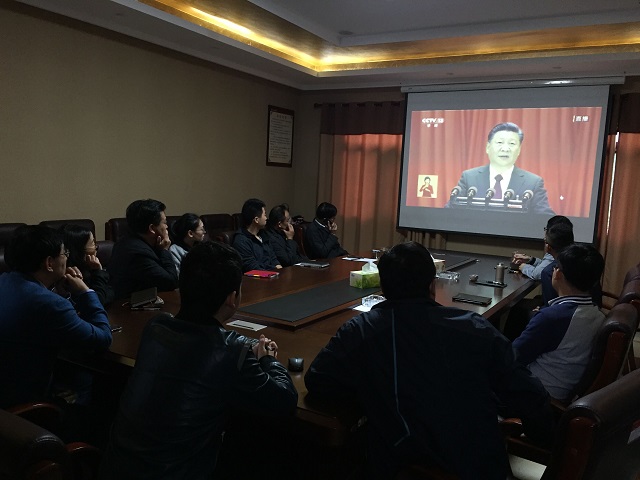 珠海区域公司组织党员干部职工收看十九大直播 时间:2017-10-18 2798 2017年10月18日上午9点,中国共产党第十九次全国代表大会在北京隆重开幕,半岛官网入口网页版珠海分公司、重庆分公司分别组织公司机关全体党员干部职工集体收看十九大直播。 部分出差在外的员工也积极争取时间用手机等移动设备收看收听大会报告。同时,区域公司所有项目部也通过电子显示屏、悬挂条幅等方式热烈祝贺党的十九大胜利召开。