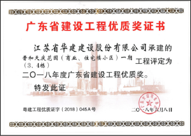 晋和天庆花园一期工程喜获广东省建设工程优质奖 时间:2018-07-25 2618 近日,根据广东省建筑业协会粤建协[2018]49号文件《关于公布2018年度广东省建设工程优质奖名单的通知》,由珠海公司承建的晋和天庆花园一期工程喜获广东省建设工程优质奖。 晋和天庆花园一期工程由珠海区域公司第五项目部负责施工,位于珠海市金湾区三灶镇中心地段,总建筑面积156804.71m2,由8栋高层住宅楼和1栋综合楼组成。 (技术质量处)