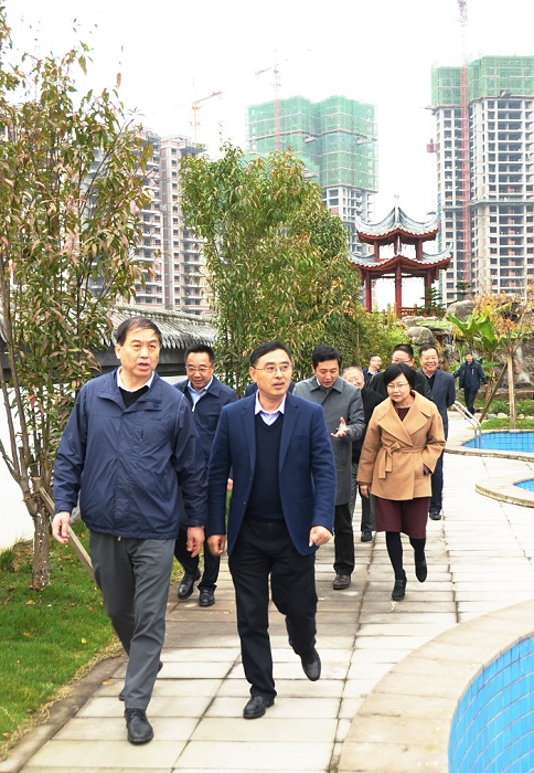 朱民阳主席一行首先实地考察了公司承建的岳池城东新区PPP项目,先后来到东城明珠棚改小区、姚家河公园一段C区、岳池分公司办公楼等地,通过实地查看、听取介绍、讨论交流等方式,详细了解了公司岳池城东新区PPP项目的进展情况。