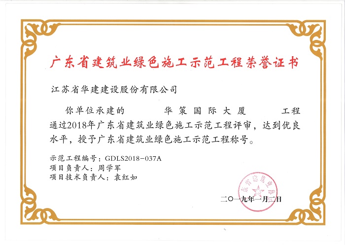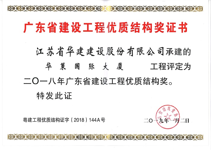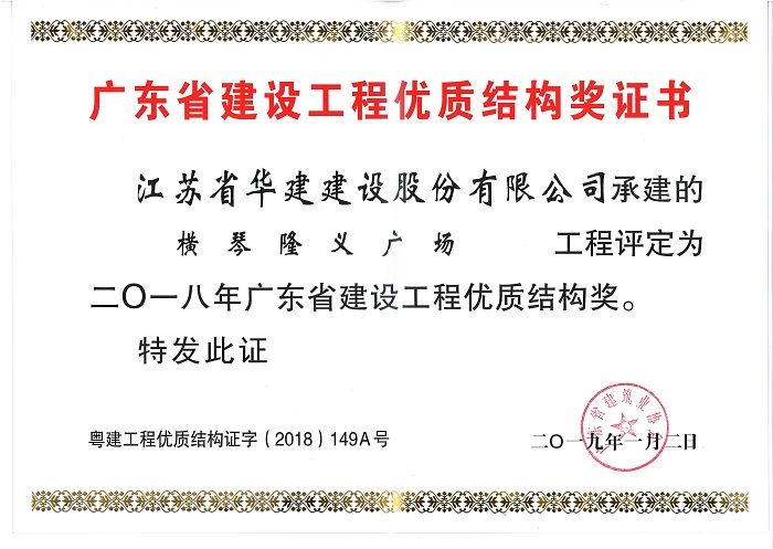 公司3个项目喜获多项省级表彰 时间:2019-04-10 3179 近日,广东省建筑业协会、广东省建筑安全协会分别发文表彰了一批优质结构工程、绿色施工示范工程和安全文明工地,公司3个项目荣列榜单。其中,阳光马德里、横琴隆义广场、华策国际大厦均被表彰为二〇一八年广东省建设工程优质结构奖,华策国际大厦被授予广东省建筑业绿色施工示范工程称号,横琴隆义广场被评为2017年广东省房屋市政工程安全生产文明施工示范工地。