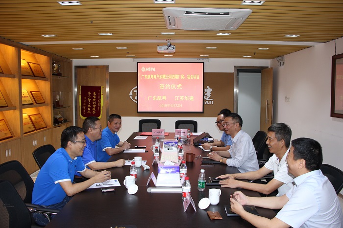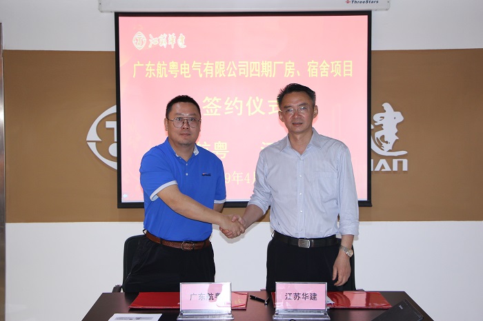 4月23日,公司举行广东航粤四期厂房项目签约仪式。公司总经理吕方达、副总经理、总工程师周学军、副总经理朱涛和广东航粤电气有限公司董事长杨建丰、总经理岳晓访、董事长助理黄创群等参加签约仪式。
