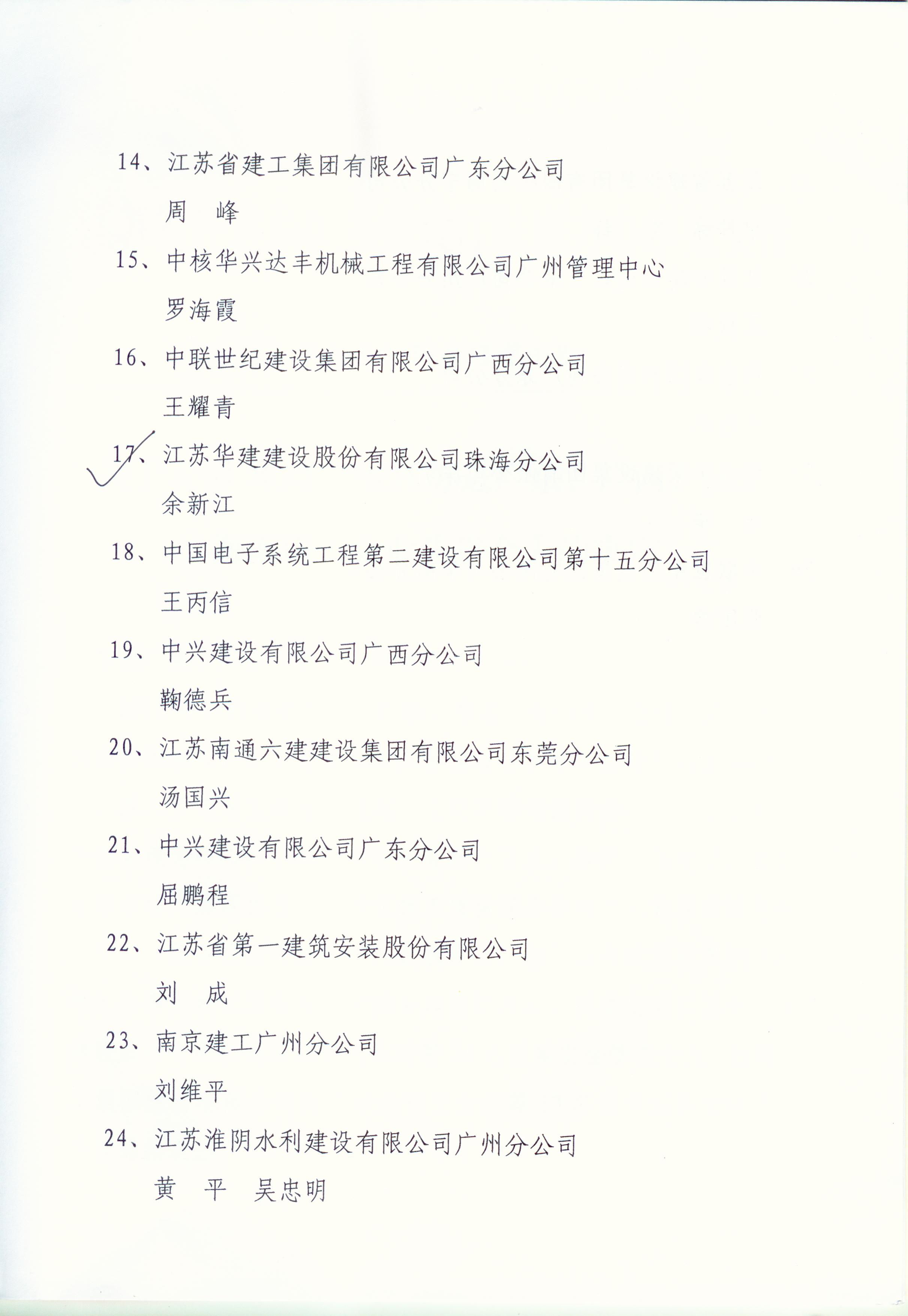 2012年江苏进粤、桂、闽、琼建筑施工先进企业、优秀企业经理、优秀建造师及经营财务管理、质量安全管理先进个人
