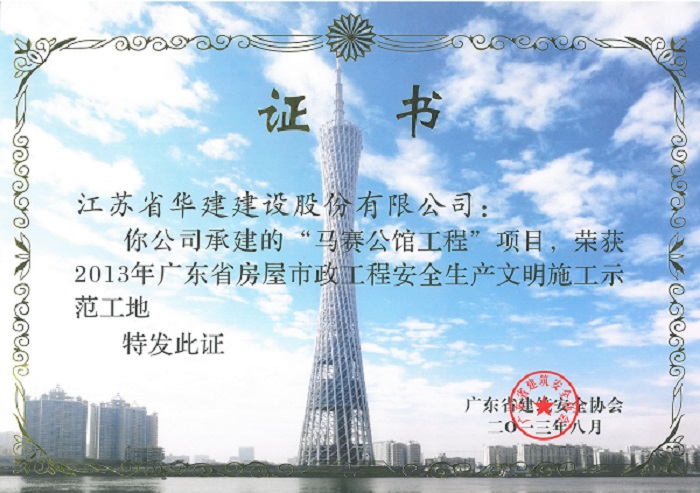 2013年马赛公馆工程广东省“AA级安全文明标准化工地”