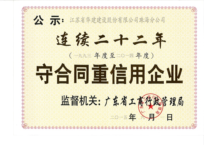 2015广东省连续二十二年守合同重信用企业