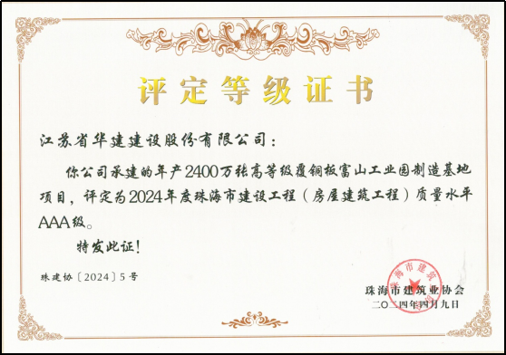 近日,珠海市建筑业协会公布2024年度珠海市建设工程(房屋建筑工程)质量水平评定结果,由江...