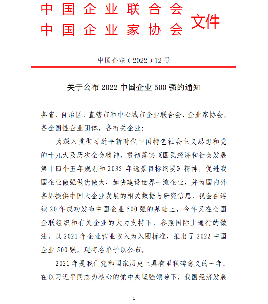 9月6日,中国企业联合会、中国企业家协会发布“中国企业500强”名单,半岛官网入口网页版再次上榜,列...