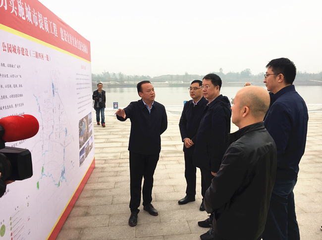 11月30日,岳池县委书记米亮一行调研城东新区建设管理情况,视察了公司正在建设的龙湖公园。...