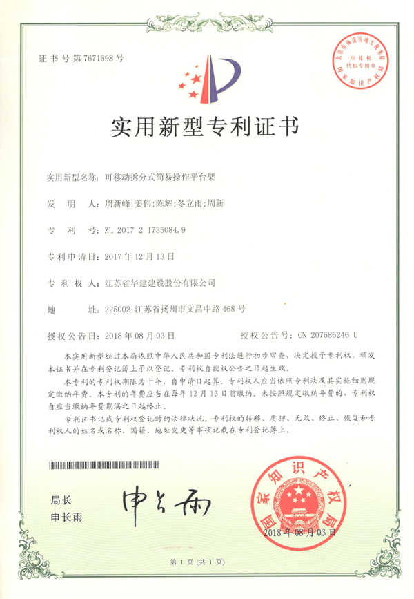 近日,从国家知识产权局传来喜讯,北京公司发布的《可移动拆分式简易操作平台架》(专利号:ZL...