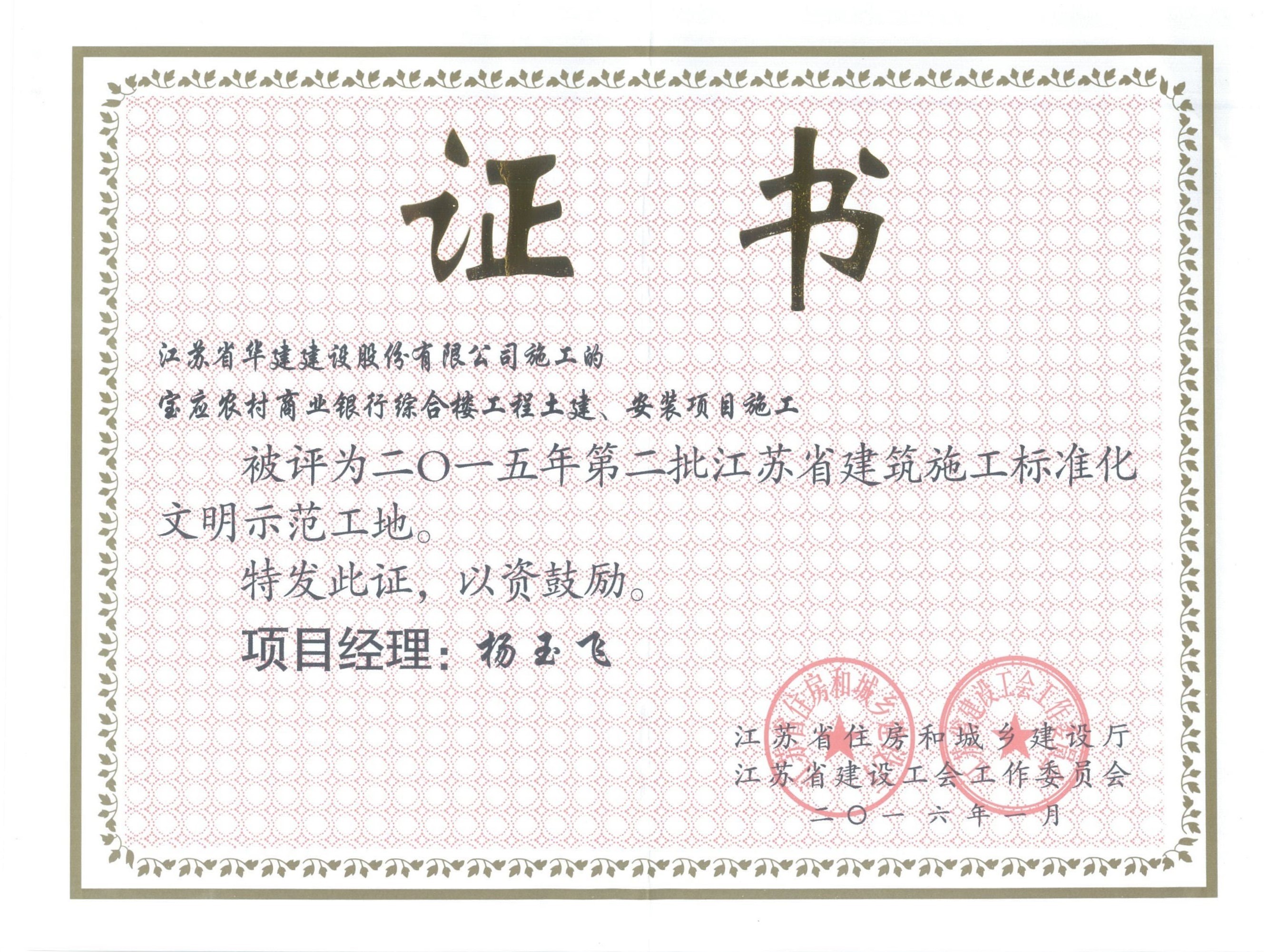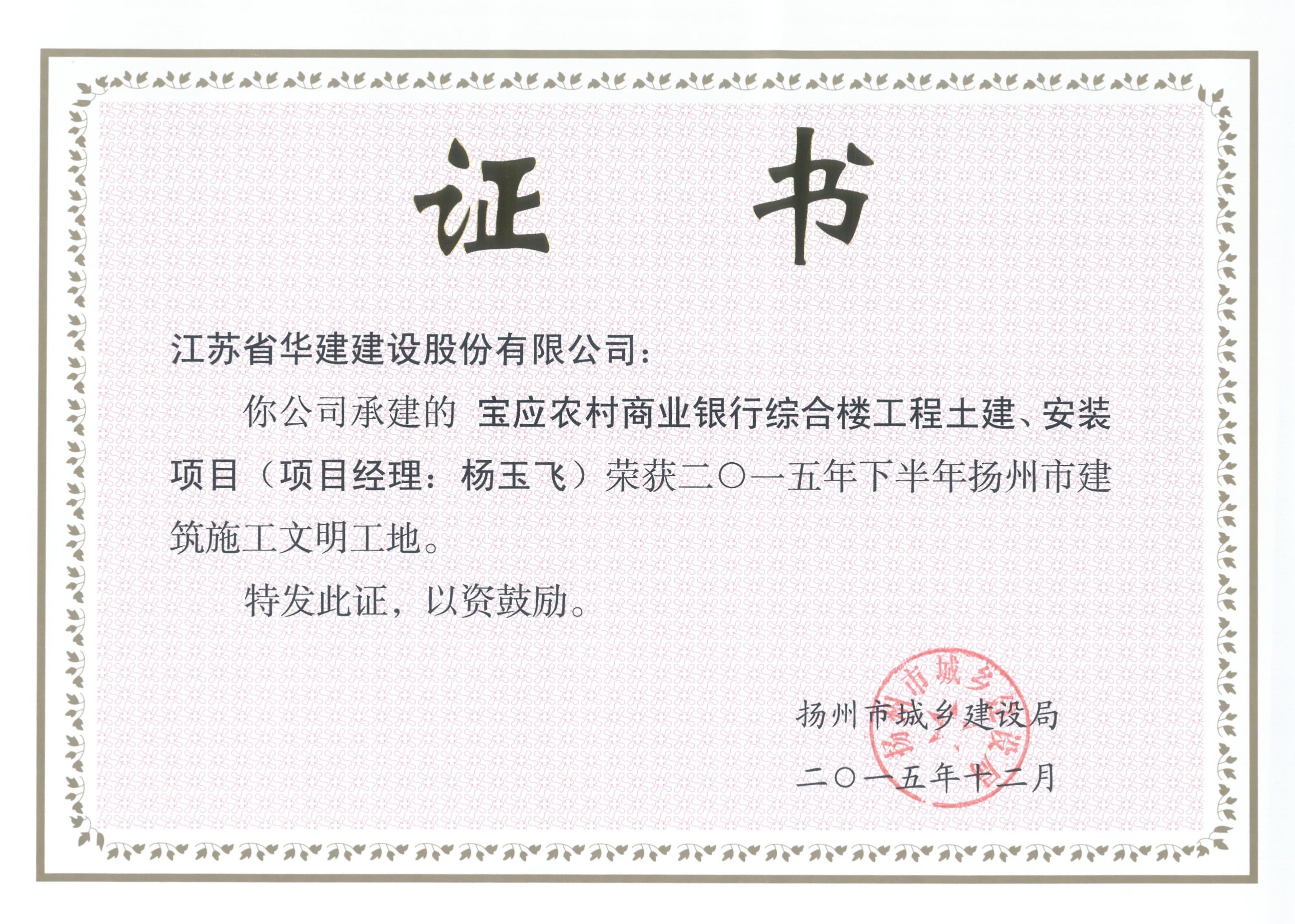 省标准化文明示范工地——宝应农村商业银行综合楼