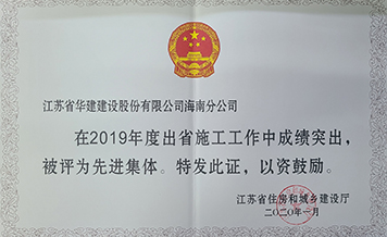 近日,江苏省住建厅南方办转发了江苏省住建厅《关于表扬2019年度江苏出省施工先进集体和先进...