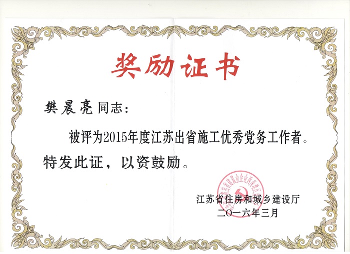 近日,重庆分公司被江苏省住房和城乡建设厅表彰为“2015年度江苏出省施工先进企业”,重庆分...
