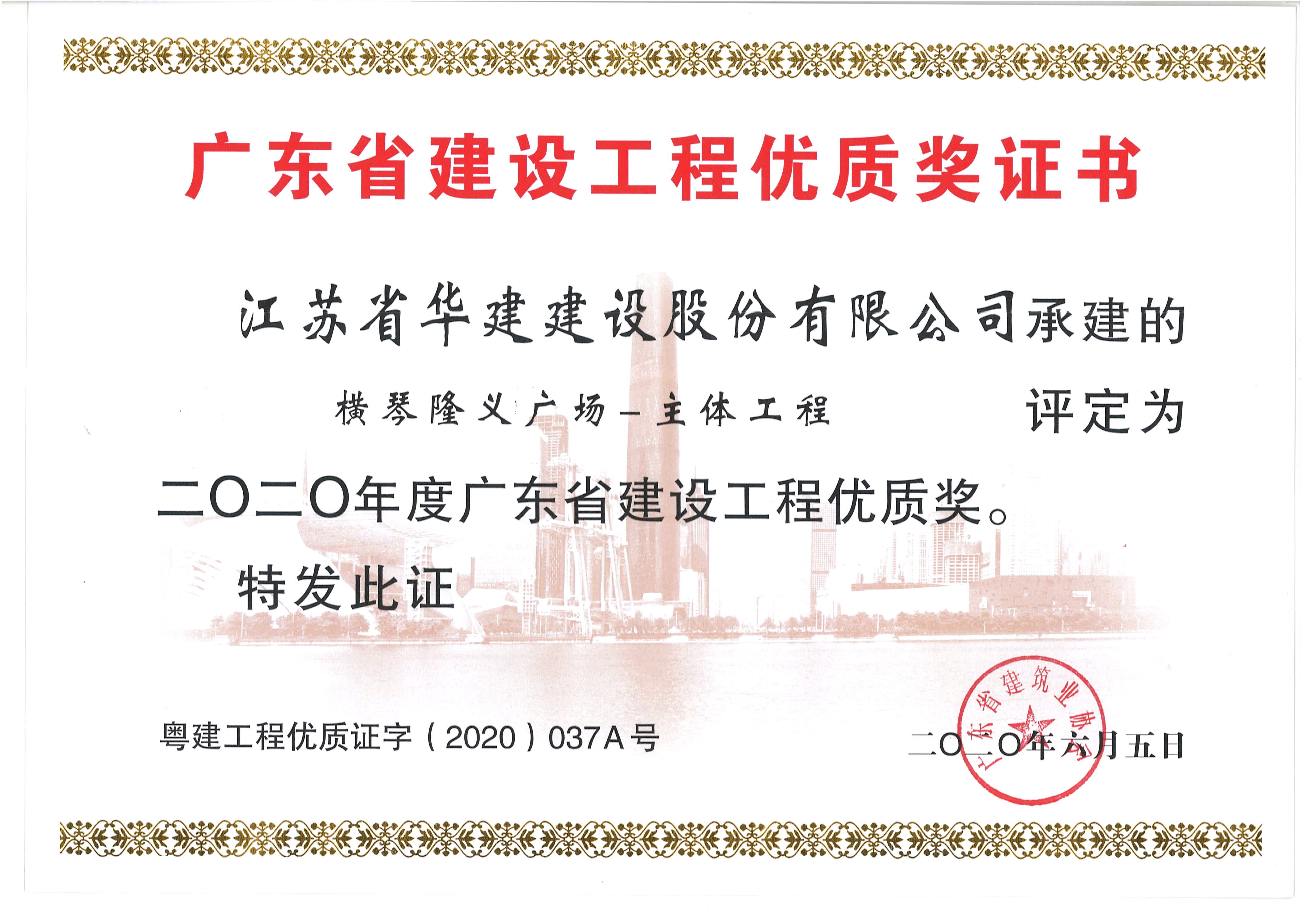 横琴隆义广场-主体工程获2020年度广东省建设工程优质奖