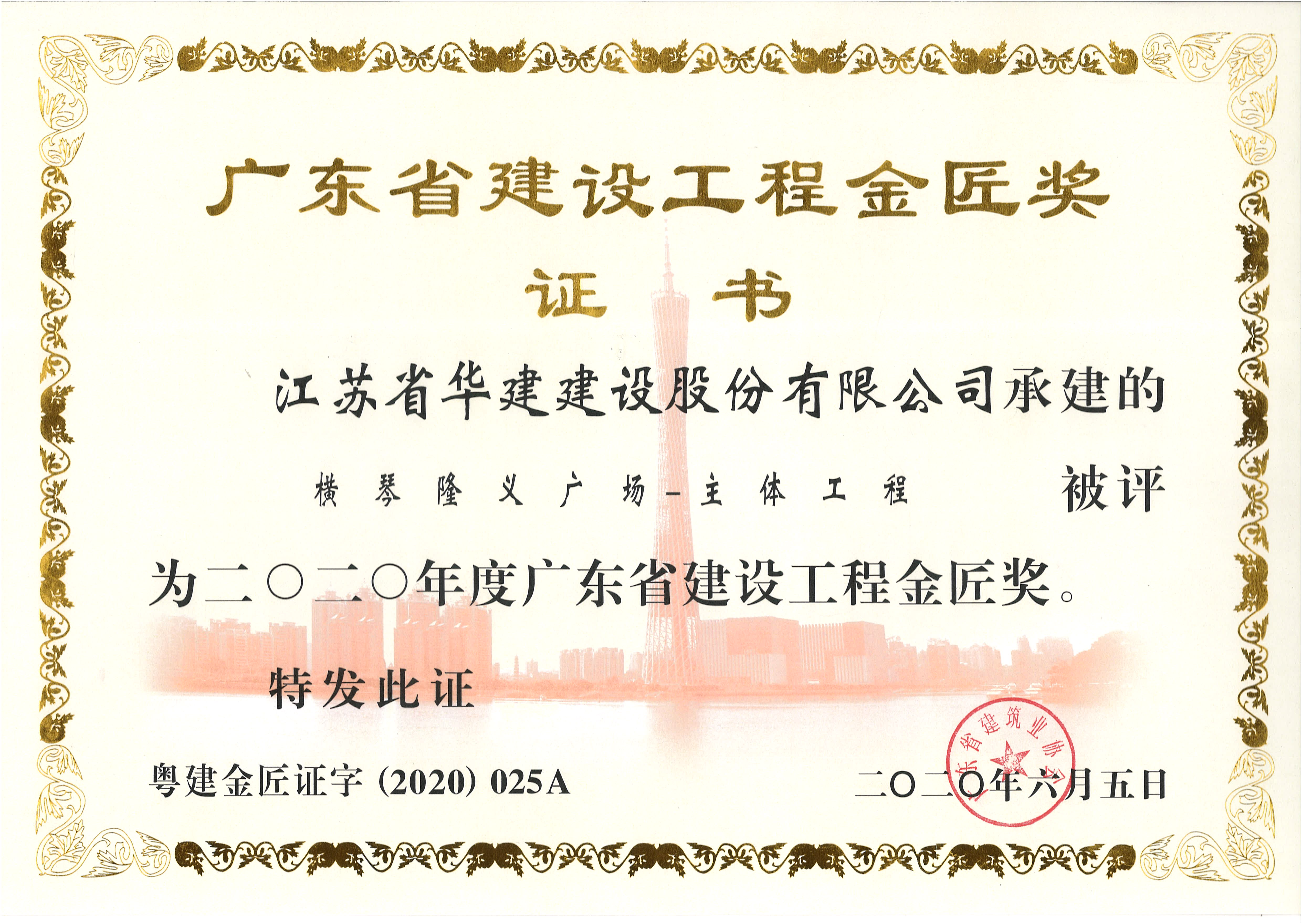 横琴隆义广场-主体工程获2020年度广东省建设工程金匠奖