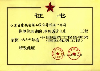 荔景大厦获:深圳市优质样板工程(第一名)、江苏省优工程(金牌)、江苏省扬子杯奖、江苏省名牌工程、扬州市琼花杯奖、1996年度建筑工程鲁班奖。