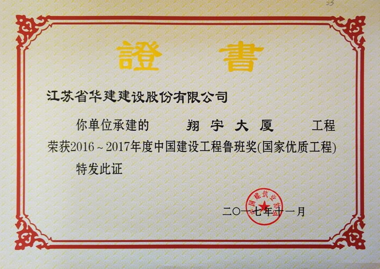 翔宇大厦工程位于淮安市生态新城核心示范区,北邻景会路、西邻致远路、南面为篆香楼路,交通便利地,由淮安新城房地产开发有限公司投资,东南大学建筑设计研究院设计,江苏省华建建设股份有限公司总承包施工,总建筑面积90300平方米,其中地上72036平方米,地下18264平方米。工程由南北主楼、中裙楼和北裙楼组成,南主楼20层,北主楼22层,建筑高度88.6米,主体结构为钢筋混凝土框架剪力墙结构,基础为桩+筏板基础。该工程于2011年7月18日破土动工,于2014年9月9日竣工。该工程被评为住建部绿色施工科技示范工程、国家AAA级安全文明标准化工地和江苏省建筑业新技术应用示范工程。2016年被中建协评为2016—2017年度中国建设工程鲁班奖(国家优质工程)。