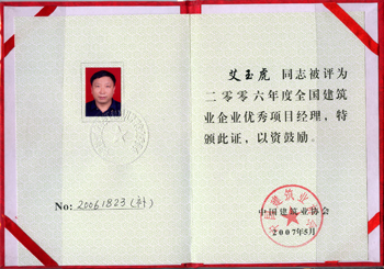 艾玉虎同志对事业执著,做事诚信,管理上路,一项项优质工程从他手中接二连三诞生。1996—2011年15年时间里,艾玉虎带领他的团队在深圳共承担施工任务23项,其中10万平方米以上规模工程达7项。1997年,在他带领下,在1.3公里长布吉河箱涵上建起了超乎想象、令人钦佩的19栋商住楼,受到深圳市布吉镇镇政府的表扬和嘉奖。担任项目经理的深圳国际商会中心工程和深圳荣超经贸中心工程荣获全国建设工程最高质量荣誉鲁班奖。高度273米、建筑面积13万平方米、62层的绿景纪元大厦工程为深圳市超高层标志性建筑。目前,他和他的团队又在意气奋发,冲刺着人生和事业的新高度。