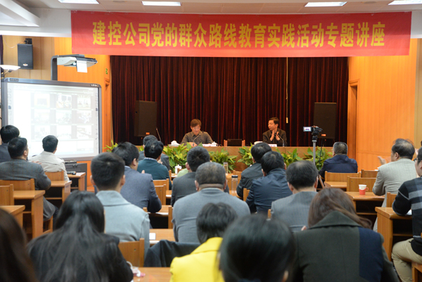 3月28日下午,公司在一楼会议室举办了党的群众路线教育实践活动专题讲座。讲座由市委党校薛峰教授主讲,公司党委书记陆金龙主持,党委副书记吴士茂,党委委员程杰、王宏和建工控股机关、华建公司总部全体人员,各直属单位领导班子党员负责人、党务部门负责人共58人到会听讲。华建深圳、海南、北京、珠海、上海、惠州、盐城等驻外分支机构以视频形式同步收听收看。