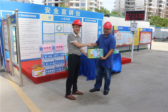 公司工会赴工地进行高温慰问 时间:2019-06-11 2245 6月10日上午,海南分公司党总支副书记、工会主席郁远带队走访慰问海口恒大·美丽沙项目部,检查项目安全生产情况,并给奋战在高温、露天生产第一线的员工送去凉茶、绿豆、人丹等防暑用品,送去企业及工会组织的关怀。 在详细询问了工程推进情况和一线职工的工作、生活情况后,郁远书记嘱咐项目负责人要安排好施工现场人员的作息时间,做好降温消暑保护措施。并叮嘱一线的职工要注意人身与施工安全,合理安排工作时间,做到劳逸结合,确保高温期的安全生产。(办公室)