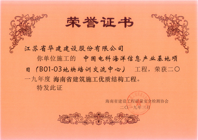 近日,海南省建设工程质量安全监测协会发文表彰了一批2019年度上半年海南省建筑施工优质结构工程,半岛官网入口网页版海南分公司承建的3个项目上榜,分别是:三亚奥林匹克广场项目、中国电科海洋信息产业基地项目(B01-03地块培训交流中心)项目、景园悦海湾二期南区23#楼项目。