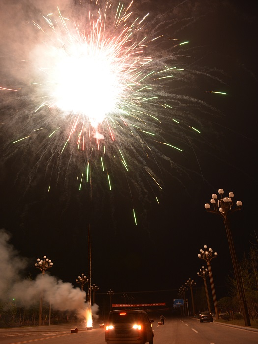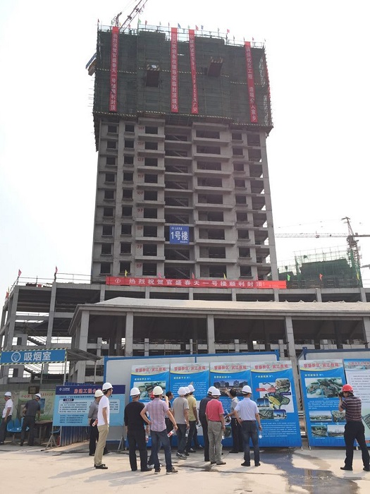 晚8点半,在莲花大道及官盛春天1#楼现场同步进行了焰火燃放,庆祝莲花大道下段顺利竣工验收及项目安置房首个楼栋主体结构封顶。