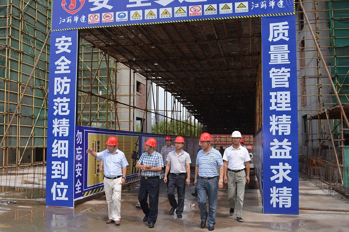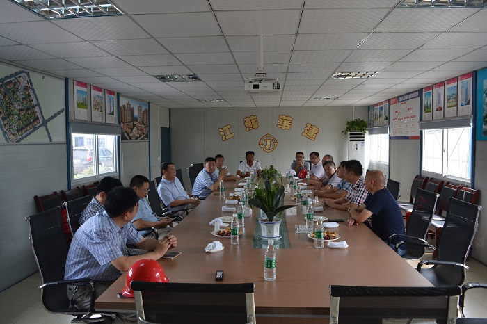 王总一行在施工现场实地了解了项目概况、项目各单项工程进展情况及工期计划安排等内容,他对工程当前进度和形象表示满意,指出广安项目各方面工作很出色,现场“令人震撼”。在现场会议室,王总与项目主要管理班子召开了专题座谈会,就如何推进项目建设广泛听取意见并进行了重点分析,对项目现阶段存在的问题提出了宝贵的建议。他勉励大家要再接再厉,确保工程质量,圆满完成项目建设目标,在西南市场进一步打响和传播华建品牌。最后,王总还介绍了海南区域公司当前的发展情况,并邀请与会人员赴海南公司考察交流。