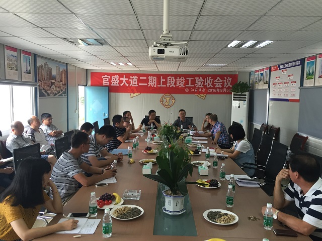 广安项目官盛大道二期上段顺利通过竣工验收 时间:2016-08-05 2737 8月5日上午,广安项目官盛大道二期上段顺利通过竣工验收。广安区住建局副局长周春兰主持验收会议,经项目监理、设计、区住建及质监等单位和业主现场代表实测检查、分别总结汇报后,一致同意工程验收合格。 官盛大道二期是广安官盛新区一条东西向城市主干道,道路全长1598米,标准路幅宽度46-60米,双向六车道,设计时速60km/h。其中上段610米,作为一个单位工程单独进行验收。