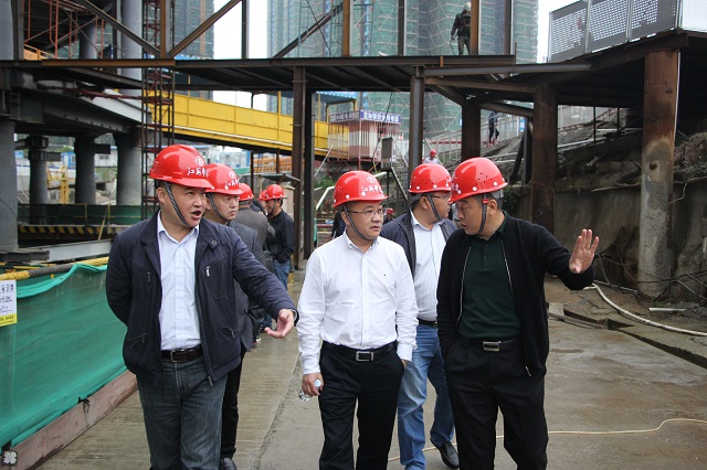 当天上午,陆总一行考察了公司在建的华策国际大厦项目,在项目部会议室听取了该工程的项目概况和施工难点介绍,并到现场参观工地。