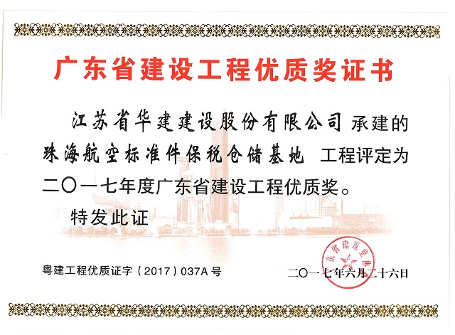 公司三项目获2017年度广东省建设工程优质奖 时间:2017-08-17 3756 近日,广东省建筑业协会公布2017年度广东省建设工程优质奖名单。公司施工总承包的珠海航空标准件保税仓储基地、丹田广场二期、君怡花园小区中心商场等三个项目入选,受到协会表彰。