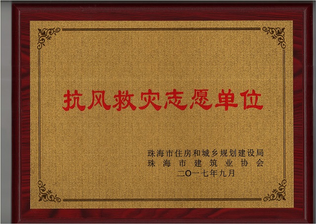 9月29日上午,珠海市住房和城乡建设局召开“市住建系统救灾复产重建总结推进会”,对遭受台风“天鸽”后全市住建系统进行的救灾复产重建工作进行了总结,并对住建系统志愿参与抗风救灾单位进行了公布,我公司被授予“抗风救灾志愿单位”荣誉称号。